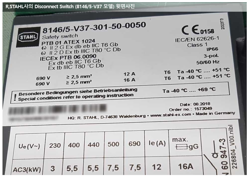 공급품목 : R.STAHL사 Disconnect Switch
